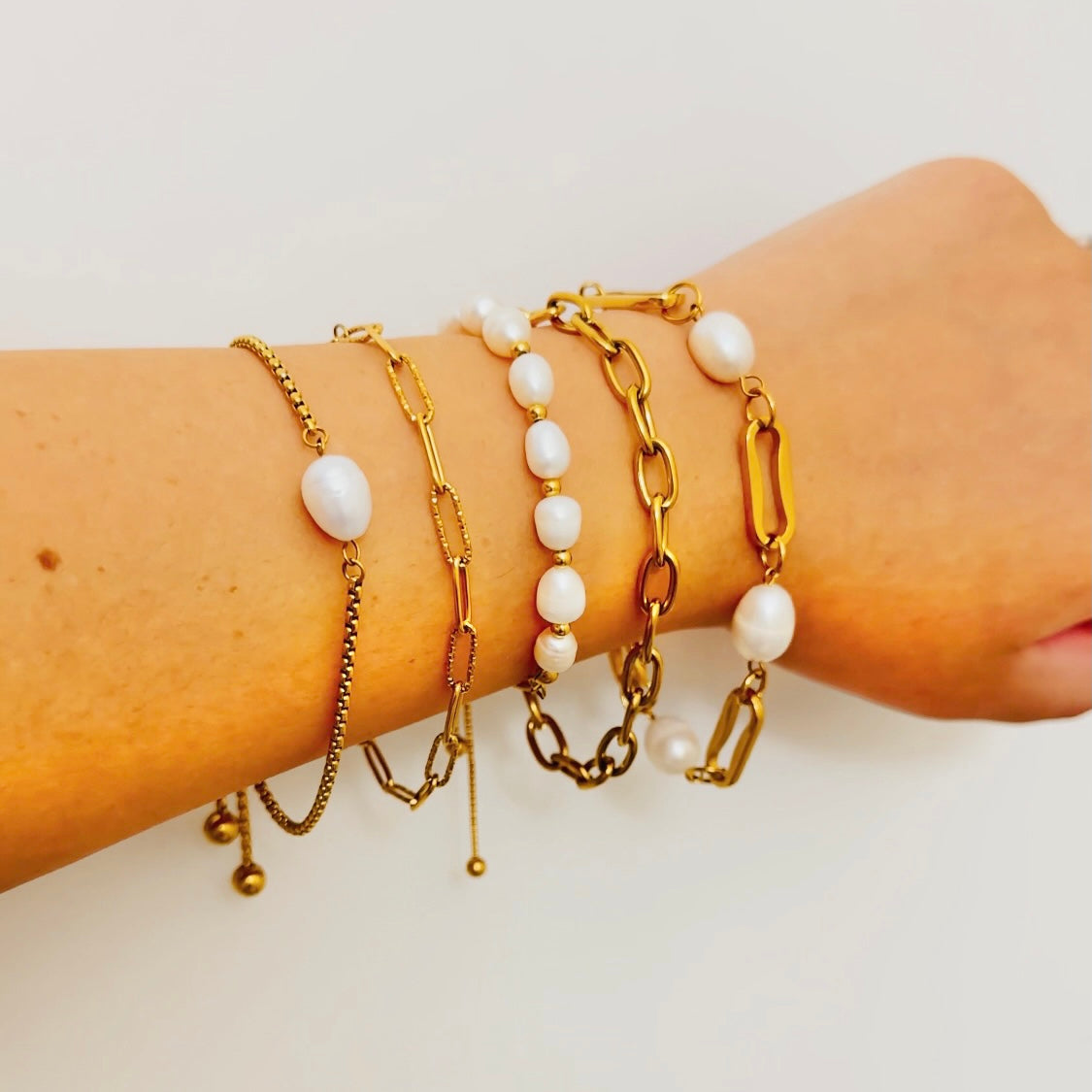 Fresh gold bracelet styles are now available in the shop! Designed to layer beautifully and shine every day—browse the latest additions below.