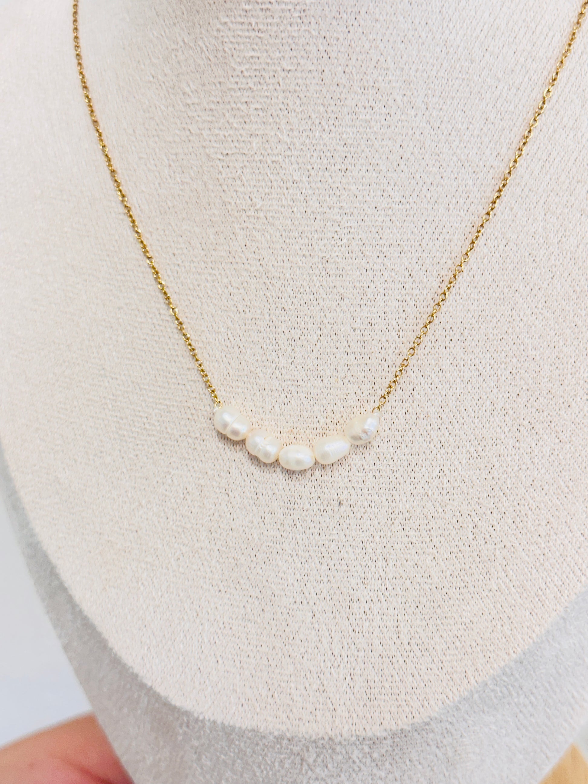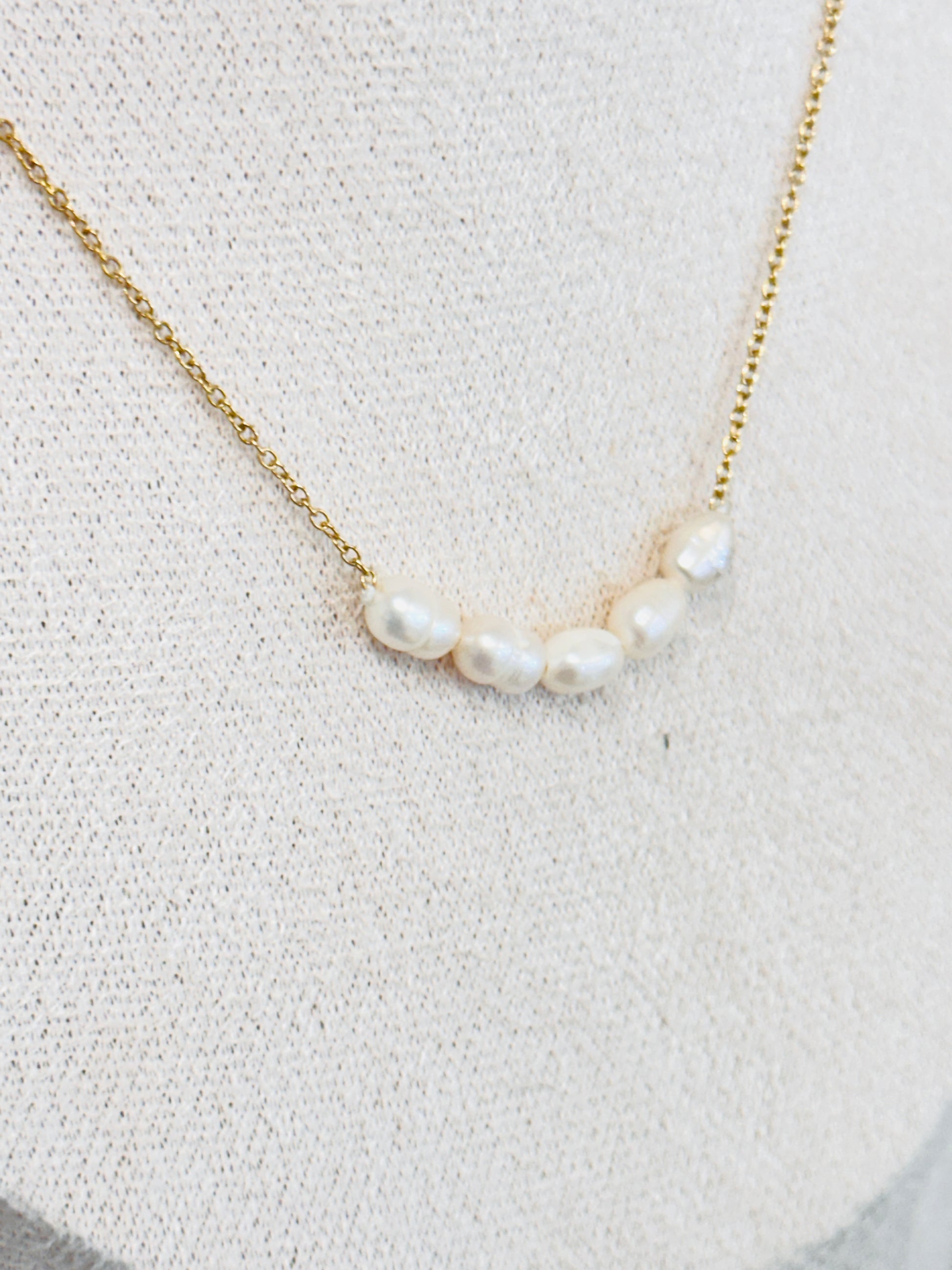 Simple, timeless, and elegant, our Minimal Pearl Beaded Necklace features luminous freshwater pearls resting delicately along a dainty gold chain. Designed for everyday wear, this necklace layers beautifully or makes a subtle statement on its own. With an extender for added versatility, it adjusts to your perfect fit.
