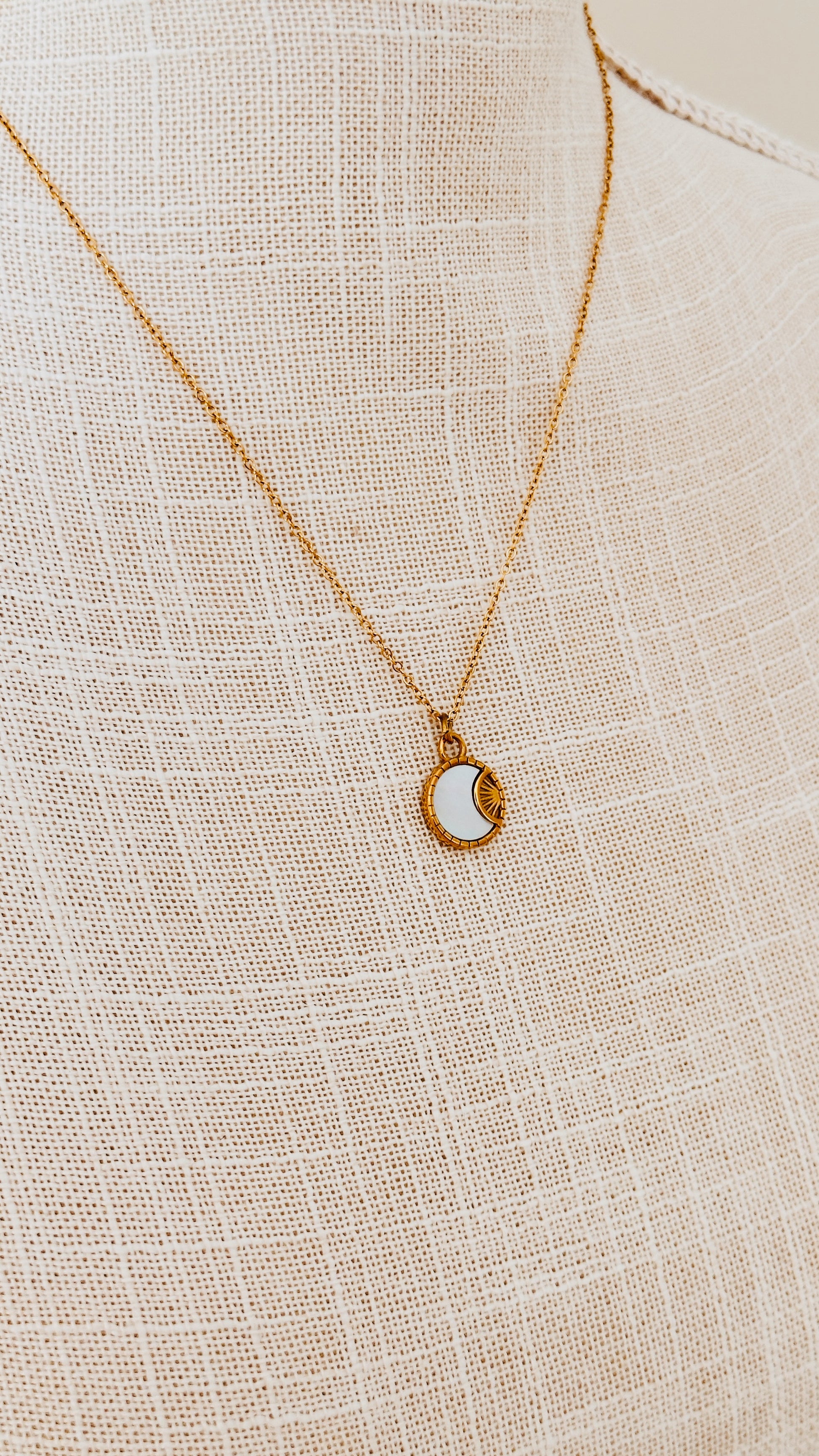 Mother of Pearl + Crescent Moon Pendant Necklace
