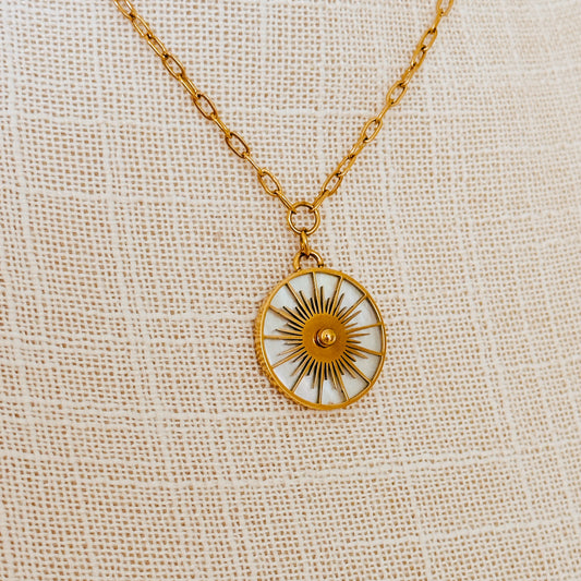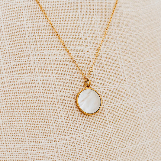 Mother of Pearl + Crescent Moon Pendant Necklace